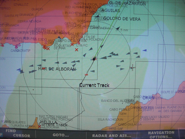 Despite the beautiful sunset that adorned our departure from Saidia, it was not long before we were right in the thick of some pretty strong winds with waves to match. The result ... We’re still not sure who’s more stubborn, Nick or Roo?! Neither was prepared to admit we should have turned back to the marina to wait for the winds to calm and sit out the swell ... So, 7 hours down wind to the East in 25 knots+ it was! We headed into Algerian waters, nowhere near where we were meant to be going, but then finally, at around 7 am, the wind and swell dropped and we could finally head North towards Cartegena.