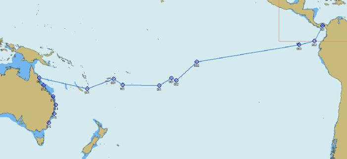 From Panama City it is a week long sail down to the Galapagos Islands and from there a 3,000 mile passage to the Marquessa Islands. Then to French Polynesia, Tahiti, Bora Bora, the Society Islands, Rarotonga, Tonga, Fiji, and New Caledonia.