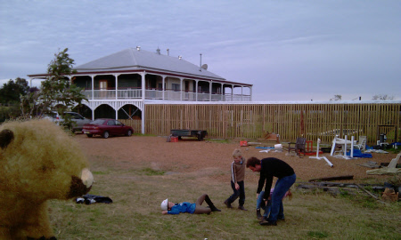 Wally wasnt sure what the kids meant when they said they wanted to play Bucking Bronco, but was happy to watch on when Uncle Nick stepped in to show him how its done.