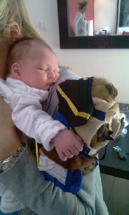 Tim, Nici & beautiful baby Ella made a wonderful welcoming committee in Auckland, but after being taken home to the Stirrup family home, he decided it was Dexter he was especially fond of. Something about all the fur I suppose ... it seems Wally might be a searching for an adventurous travelling companion!